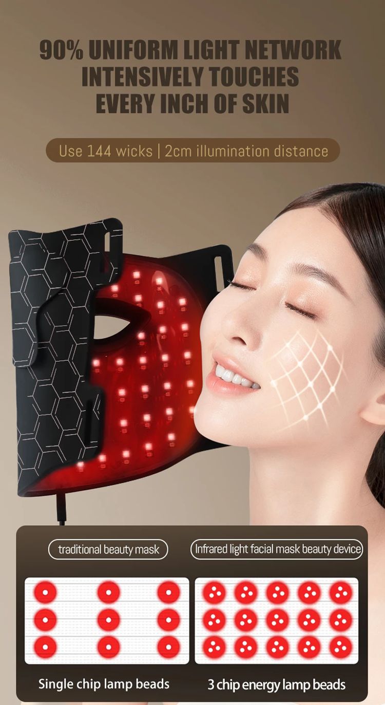 எல்.ஈ.டி ஒளி முக முகமூடி அணியக்கூடிய சிவப்பு ஒளி சிகிச்சை